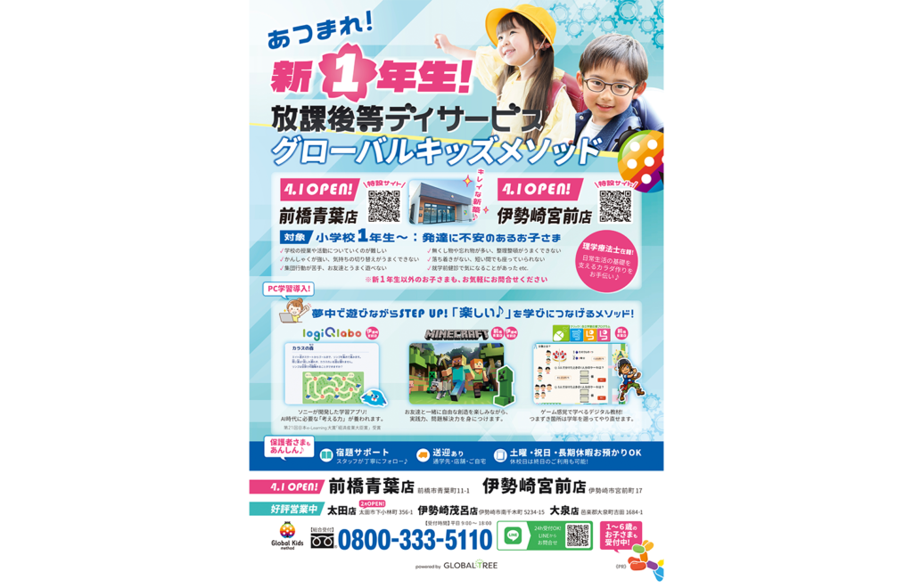 2026.03.16 COULEUR-ぐんま 「COULEUR-ぐんま」へ、弊社事業所が紹介されました。 TOP Media 「COULEUR-ぐんま」へ、弊社事業所が紹介されました。 ▪2026年3・4月号デジタル学習を取り入れた療育を実施し、楽しく学びの習慣を身につけます。 小学校1年生〜対象の「放課後等デイサービス・グローバルキッズメソッド」が紹介されました。