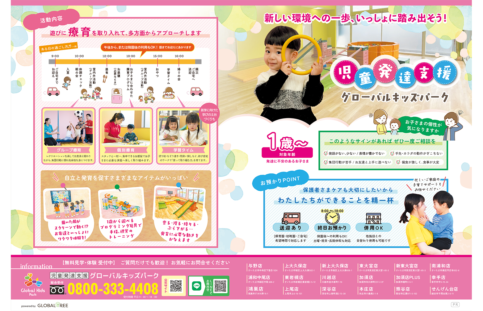 2026.03.16 COULEUR-さいたま 「COULEUR-さいたま」へ、弊社事業所が紹介されました。 TOP Media 「COULEUR-さいたま」へ、弊社事業所が紹介されました。 ▪2026年3・4月号楽しい遊びや発達段階に合わせた療育を実施し、成長と発達をサポートします。 1歳〜対象の「児童発達支援・グローバルキッズパーク」が紹介されました。