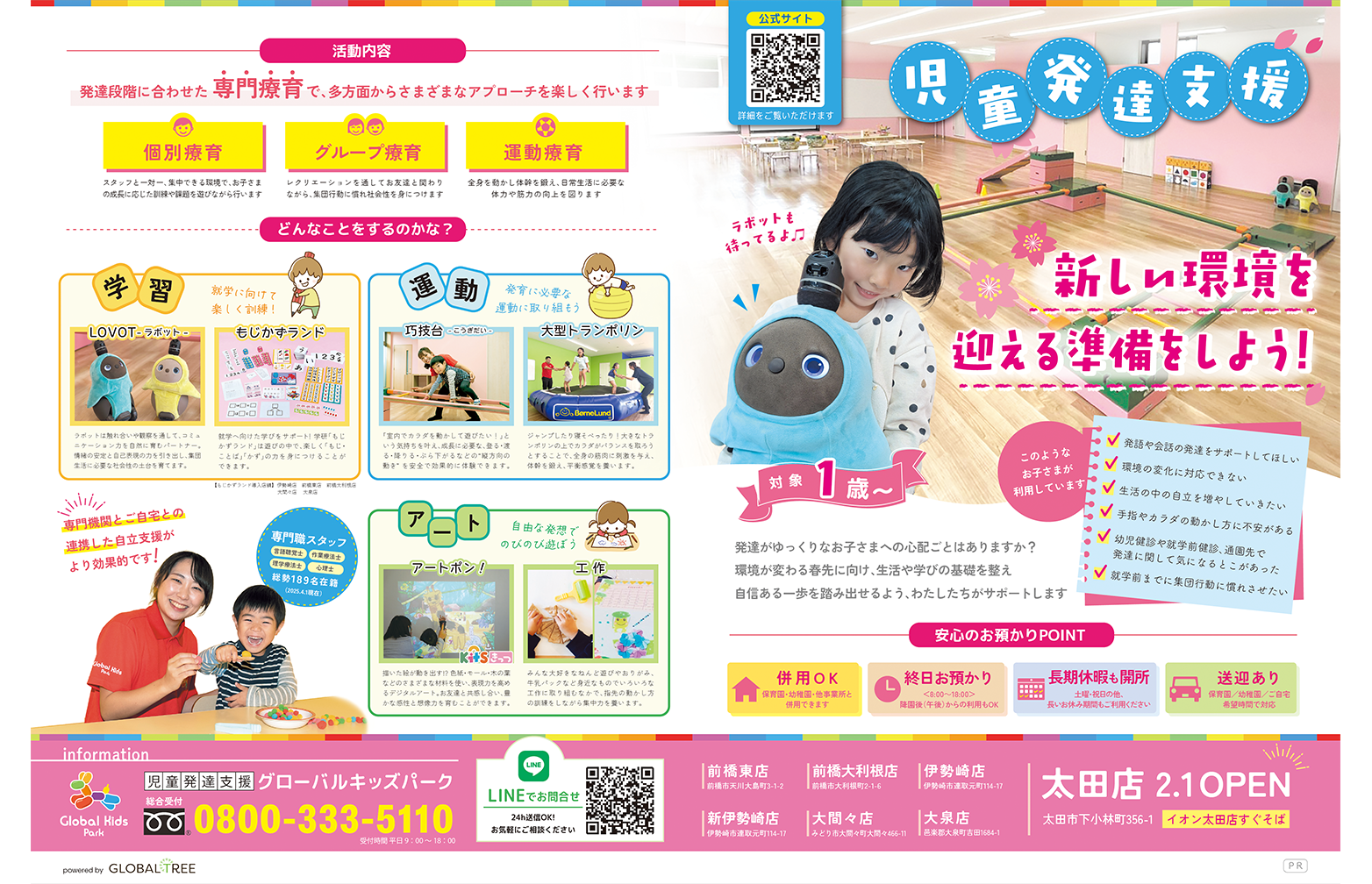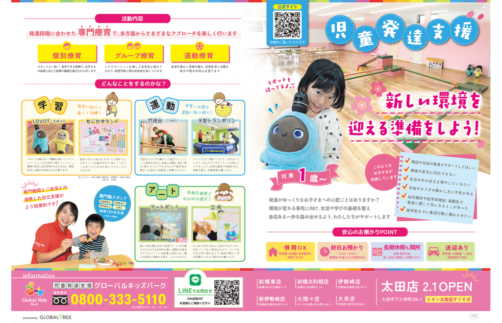1歳~対象の「児童発達支援・グローバルキッズパーク」が紹介されました。