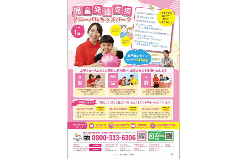 2025.11.14 COULEUR-いばらき 「COULEUR-いばらき」へ、弊社事業所が紹介されました。 TOP Media 「COULEUR-いばらき」へ、弊社事業所が紹介されました。 ▪2025年11・12月号お子さま一人ひとりの個性に寄り添い、成長と自立を支援いたします。 1歳〜対象の「児童発達支援・グローバルキッズパーク」が紹介されました。
