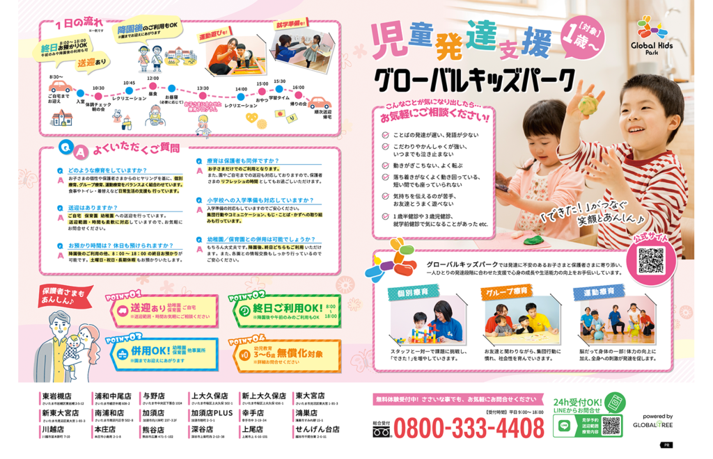2026.01.20 COULEUR-さいたま 「COULEUR-さいたま」へ、弊社事業所が紹介されました。 TOP Media 「COULEUR-さいたま」へ、弊社事業所が紹介されました。 ▪2026年1・2月号お子さまに合わせた療育を実施し、「できた!」を増やして自信に繋げます。 1歳〜対象の「児童発達支援・グローバルキッズパーク」が紹介されました。