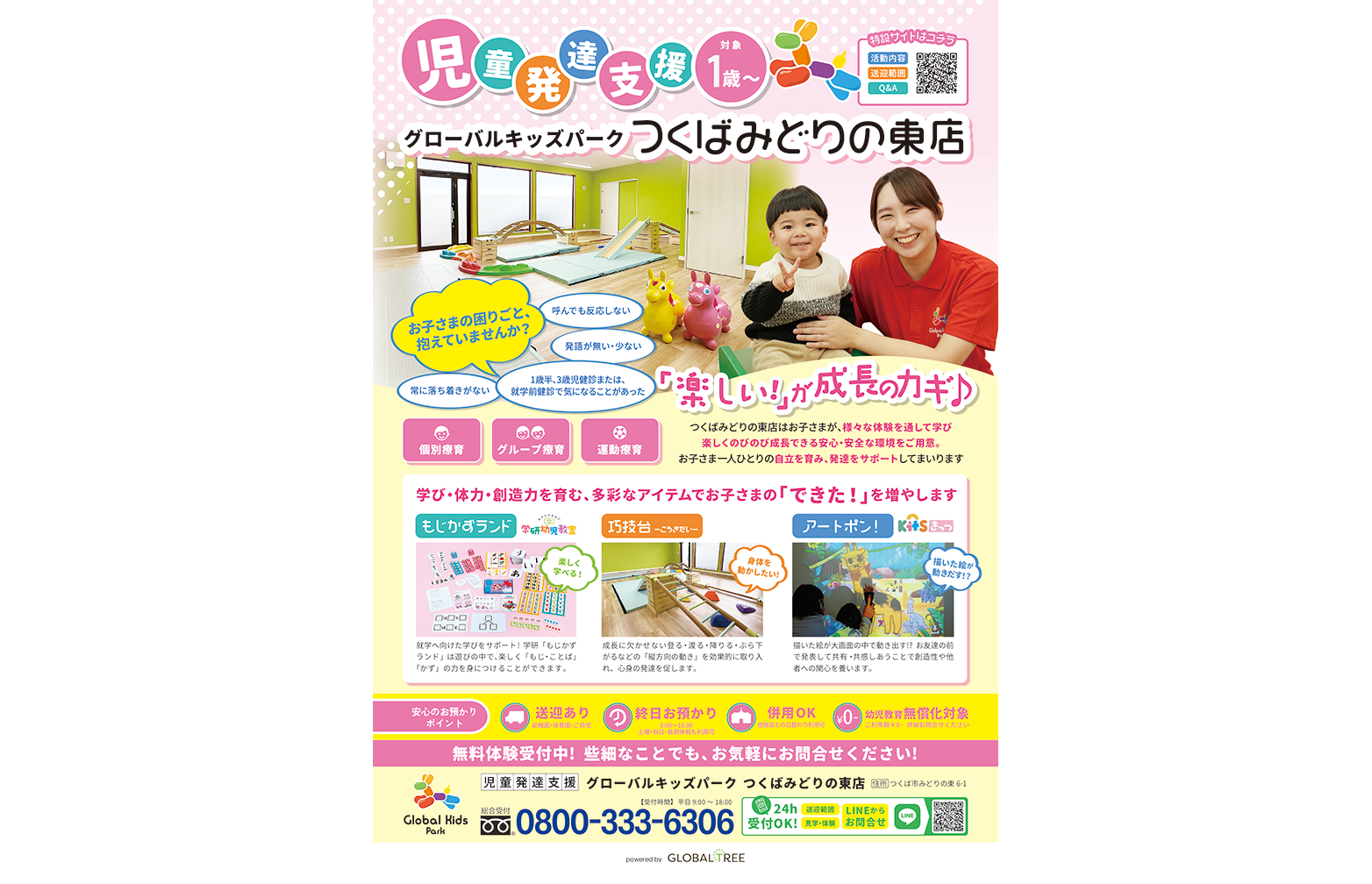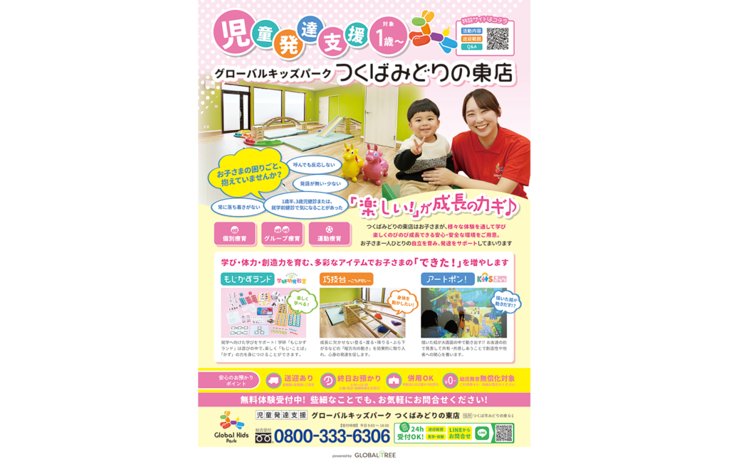 茨城県つくば市にある、1歳〜対象の「児童発達支援・グローバルキッズパークつくばみどりの東店」が紹介されました。