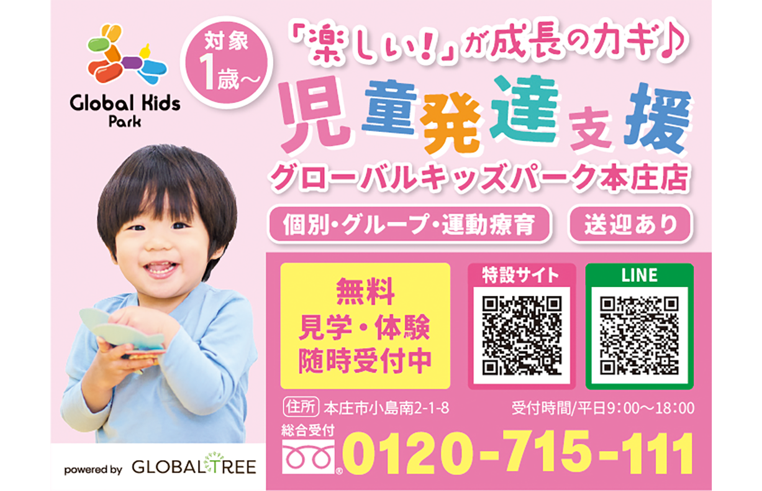 2026.04.03 本庄市 子育て情報ガイド 「本庄市 子育て情報ガイド」へ、弊社事業所が紹介されました。 TOP Media 「本庄市 子育て情報ガイド」へ、弊社事業所が紹介されました。 ▪令和8年度版お子さまの「楽しい!」を引き出す療育を実施して、成長へ繋げます。埼玉県本庄市にある、1歳〜対象の「児童発達支援・グローバルキッズパーク本庄店」が紹介されました。