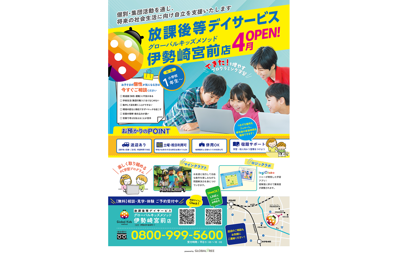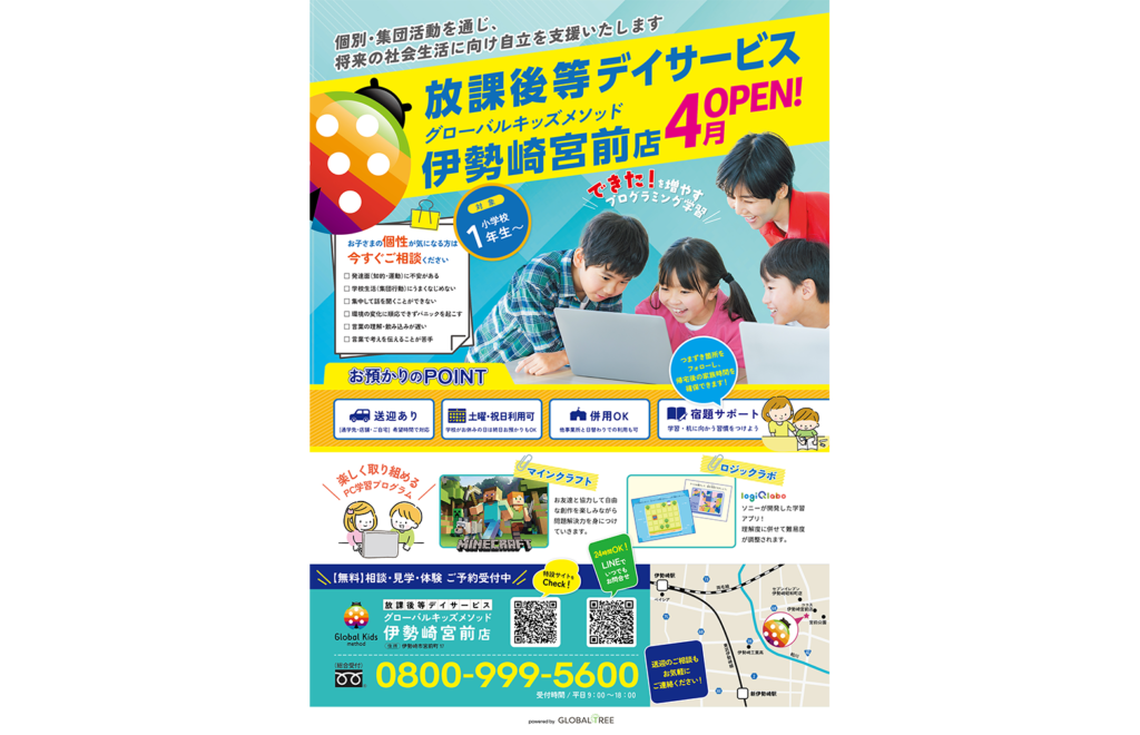 小学校1年生〜対象の「放課後等デイサービス・グローバルキッズメソッド伊勢崎宮前店」が紹介されました。
