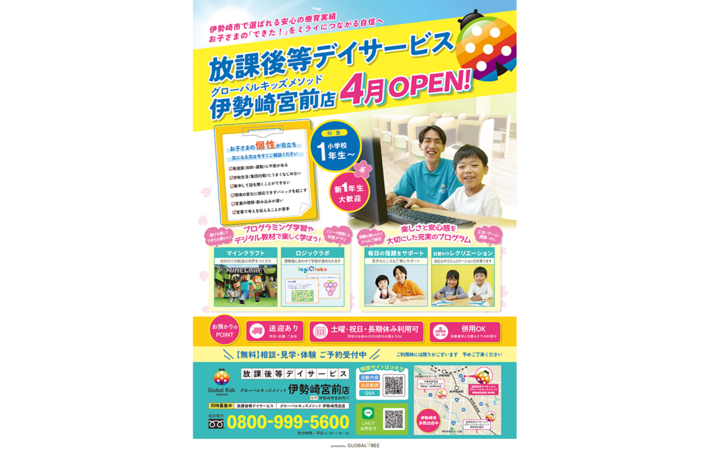2026.02.26 伊勢崎フリモ 伊勢崎 地域みっちゃく生活情報誌「伊勢崎フリモ」へ、弊社事業所が紹介されました。 TOP Media 伊勢崎 地域みっちゃく生活情報誌「伊勢崎フリモ」へ、弊社事業所が紹介されました。 ▪2026年3月号2026年4月、群馬県伊勢崎市にOPEN予定!多彩なアイテムを用いて、お子さまの「できた!」を増やす療育を実施いたします。小学校1年生〜対象の「放課後等デイサービス・グローバルキッズメソッド伊勢崎宮前店」が紹介されました。