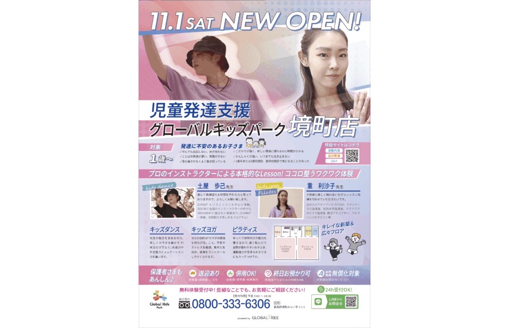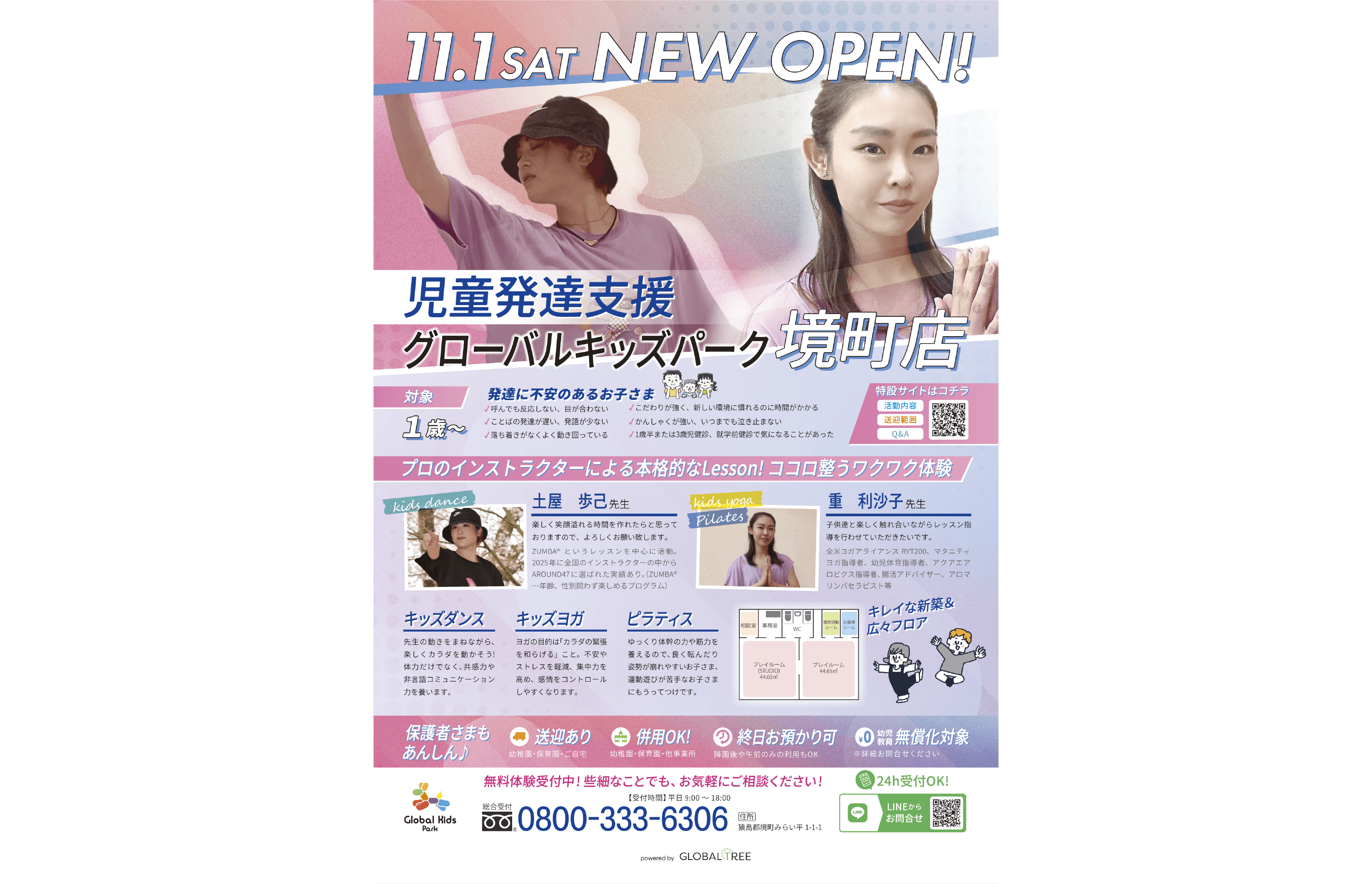 2025.10.24 月刊こがも 古河・野木・境 みっちゃく生活情報誌「月刊-こがも」へ、弊社事業所が紹介されました。 TOP Media 古河・野木・境 みっちゃく生活情報誌「月刊-こがも」へ、弊社事業所が紹介されました。 ▪2025年11月号2025年11月、茨城県境町にOPEN!新築の広々としたフロアでインストラクターによる「キッズダンス」「キッズヨガ」「ピラティス」の活動ができる、1歳〜対象の「児童発達支援・グローバルキッズパーク境町店」が紹介されました。