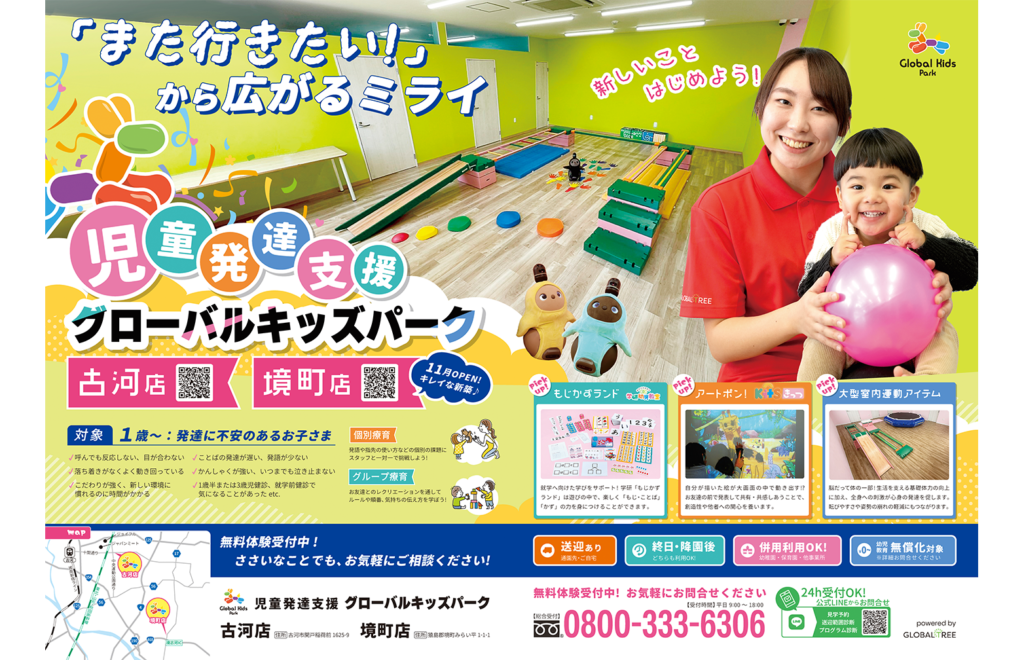 2025.12.19 月刊こがも 古河・野木・境 みっちゃく生活情報誌「月刊-こがも」へ、弊社事業所が紹介されました。 TOP Media 古河・野木・境 みっちゃく生活情報誌「月刊-こがも」へ、弊社事業所が紹介されました。 ▪2026年1月号お子さまの好奇心を高める楽しい療育を実施して、成長・発達を促します。茨城県にある、1歳〜対象の「児童発達支援・グローバルキッズパーク古河店/境町店」が紹介されました。