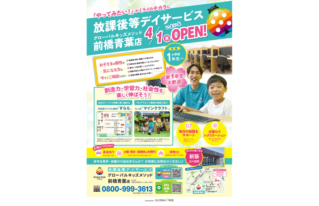 小学校1年生〜対象の「放課後等デイサービス・グローバルキッズメソッド前橋青葉店」が紹介されました。