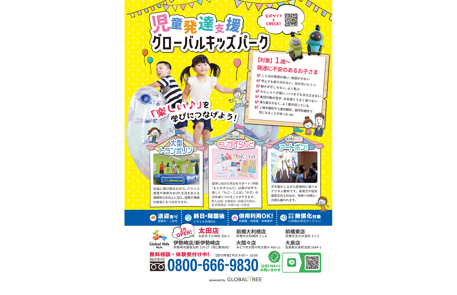 2026.04.10 ままここっと – 群馬版 「ままここっと-群馬版」へ、弊社事業所が紹介されました。 TOP Media 「ままここっと-群馬版」へ、弊社事業所が紹介されました。 ▪2026年春号・群馬版お子さまの「楽しい!」を引き出す豊富な療育アイテムを導入しています!1歳~対象の「児童発達支援・グローバルキッズパーク」が紹介されました。