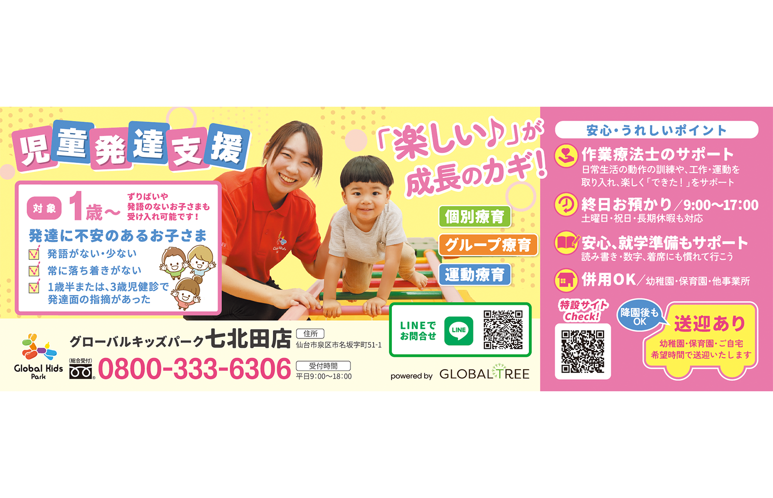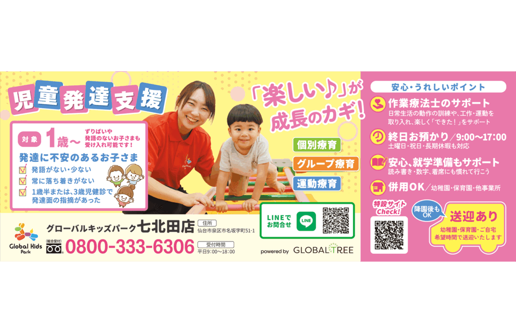 2025.09.02 ままぱれ 宮城のフリーペーパー「ままぱれ」へ、弊社事業所が紹介されました。 TOP Media 宮城のフリーペーパー「ままぱれ」へ、弊社事業所が紹介されました。 ▪2025年9月号個別療育、グループ療育、運動療育を実施して、お子さまのチカラを引き出します。宮城県仙台市にある、1歳〜対象の「児童発達支援・グローバルキッズパーク七北田店」が紹介されました。