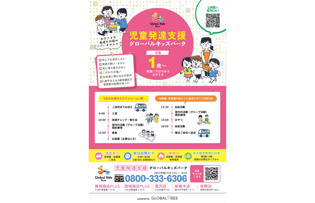 1歳〜対象の「児童発達支援・グローバルキッズパーク」が紹介されました。