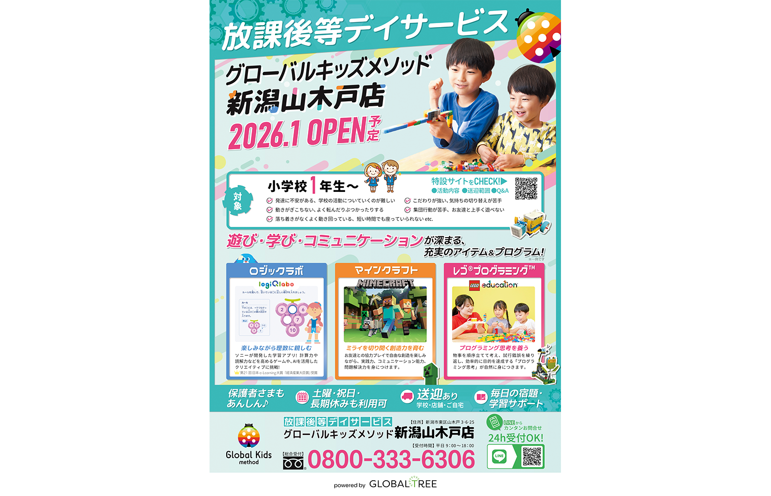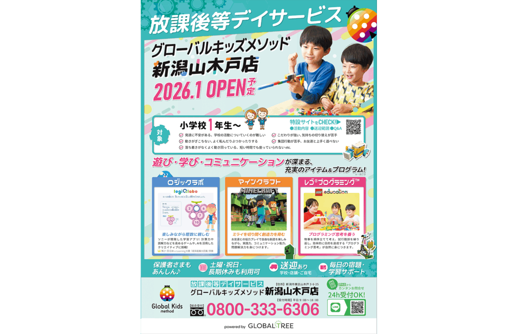 2025.12.04 まるごと新潟! フリーマガジン「まるごと新潟!」へ、弊社事業所が紹介されました。 TOP Media フリーマガジン「まるごと新潟!」へ、弊社事業所が紹介されました。 ▪2025年12月号2026年1月、新潟県新潟市にOPEN!小学校1年生〜対象の「放課後等デイサービス・グローバルキッズメソッド新潟山木戸店」が紹介されました。