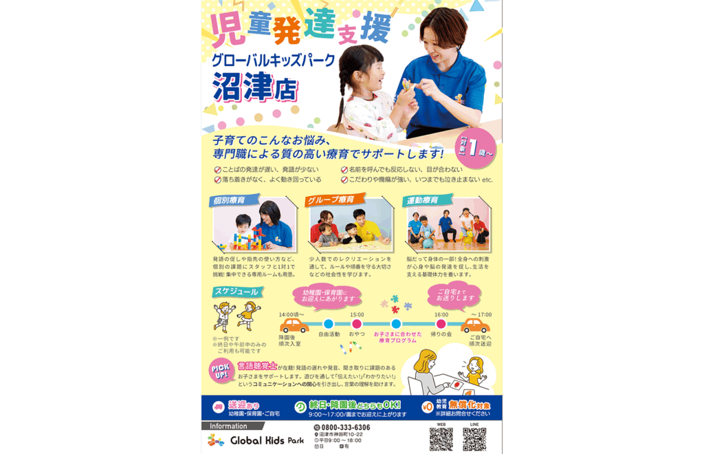 2025.08.25 mydo – 沼津版 静岡のフリーマガジン「mydo-沼津版」へ、弊社事業所が紹介されました。 TOP Media 静岡のフリーマガジン「mydo-沼津版」へ、弊社事業所が紹介されました。 ▪2025年9月号個別療育、グループ療育、運動療育を実施して、楽しい遊びからお子さまの成長へアプローチ!静岡県沼津市にある、1歳〜対象の「児童発達支援・グローバルキッズパーク沼津店」が紹介されました。