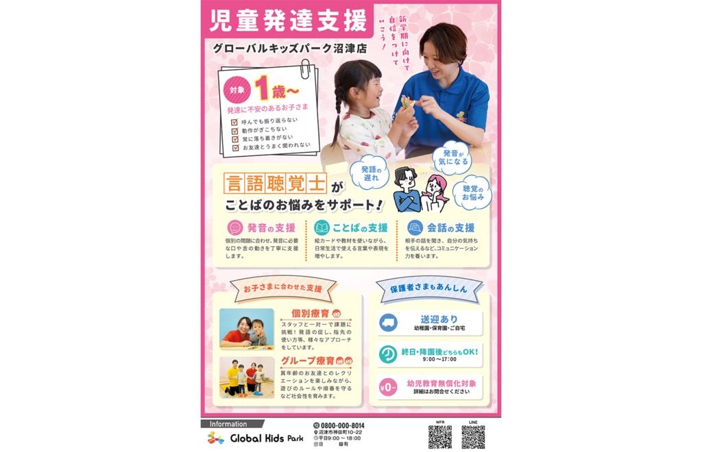 静岡県沼津市にある、1歳〜対象の「児童発達支援・グローバルキッズパーク沼津店」が紹介されました。