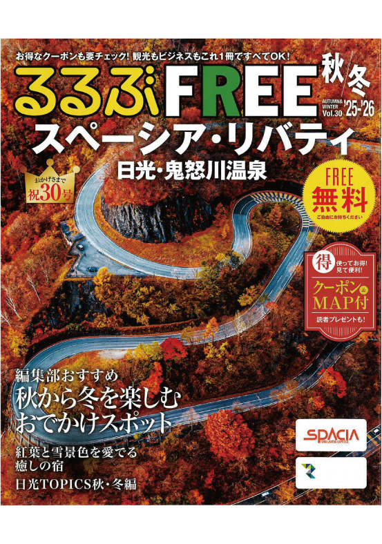 【8月31日発行】「るるぶFREE スペーシア・リバティ’25 秋冬号」に日光もなかが掲載されました