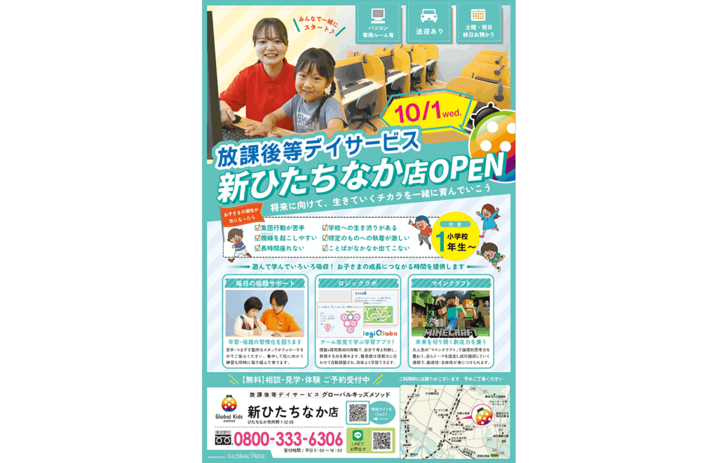 2025.08.25 月刊サクラサクライフ フリーペーパー『月刊サクラサクライフ』へ、弊社事業所が紹介されました。 TOP Media フリーペーパー『月刊サクラサクライフ』へ、弊社事業所が紹介されました。 ▪2025年9月号2025年10月1日、茨城県ひたちなか市にOPEN!小学校1年生〜対象の「放課後等デイサービス・グローバルキッズメソッド新ひたちなか店」が紹介されました。