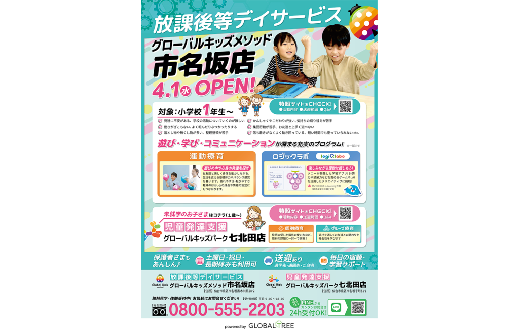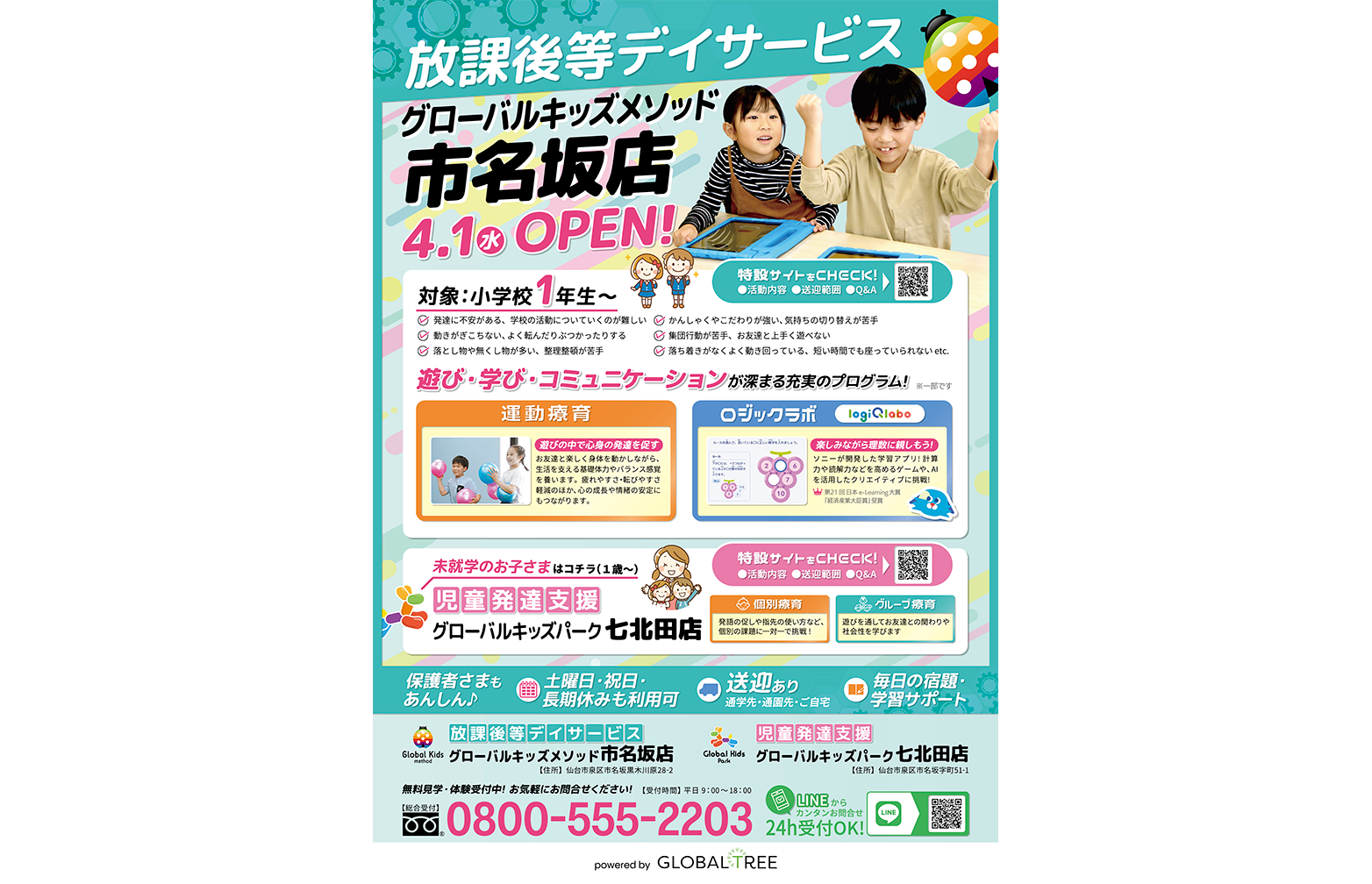 2026年4月、宮城県仙台市にOPEN予定!お子さまが楽しく取り組める活動を実施いたします。