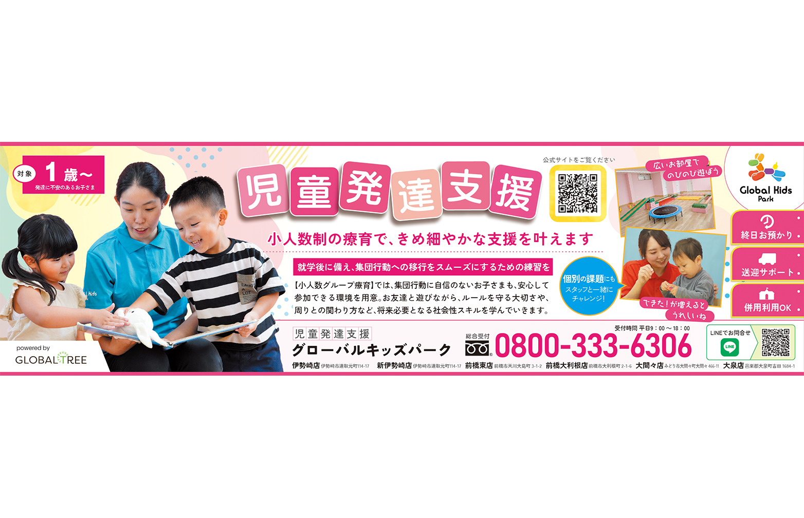 1歳〜対象の「児童発達支援・グローバルキッズパーク」が紹介されました。