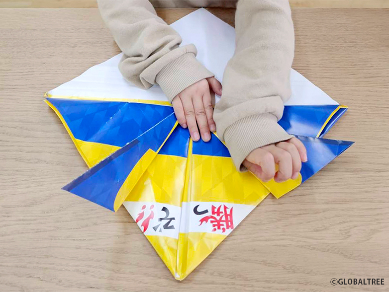 そして今回は放課後等デイサービス・グローバルキッズメソッド鐺山店宇都宮みどり野店新中今泉店の子どもたちがボランティア活動の一環として、カブト折りのお手伝いをいたしました。角と角がずれないよう意識しながら、大きな折り紙を丁寧に折る子どもたち。スタッフやお友達と一緒に取り組み、楽しく素敵なカブトを完成させることができました!